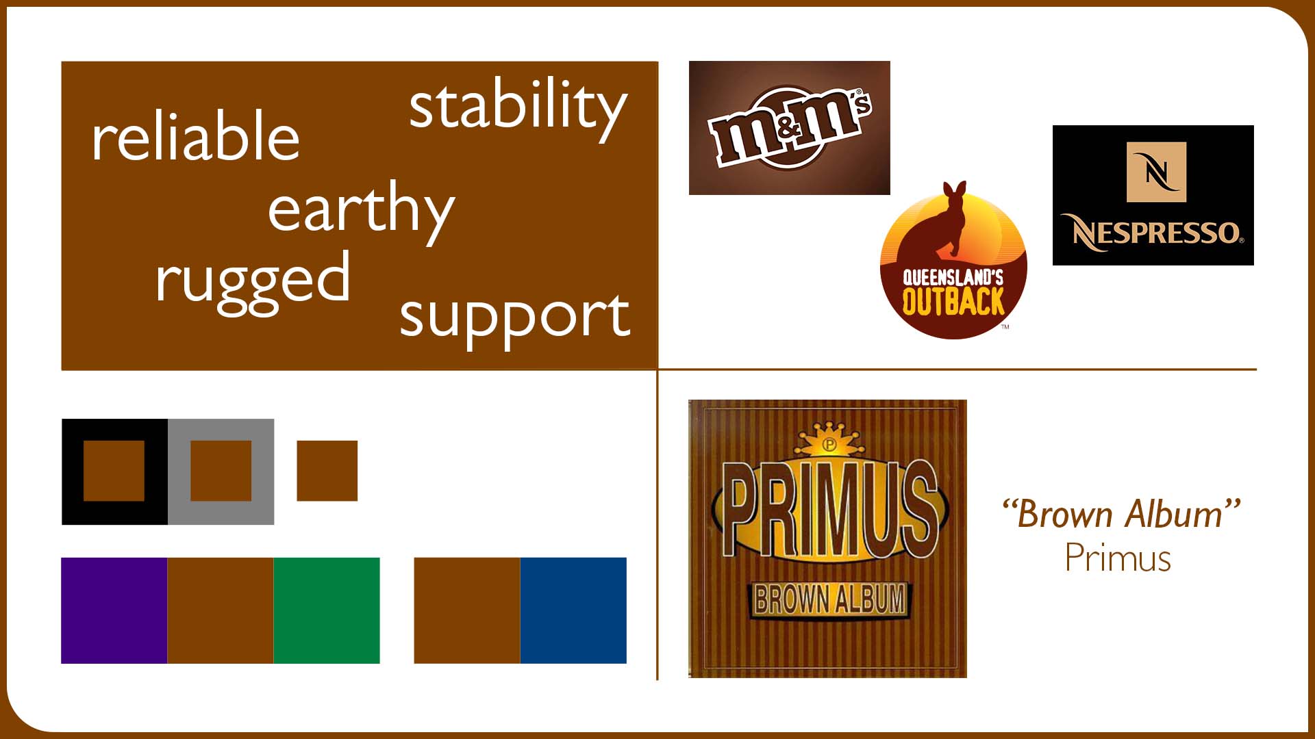 - Determine your unique points of differentiation and how they can be represented with colours.